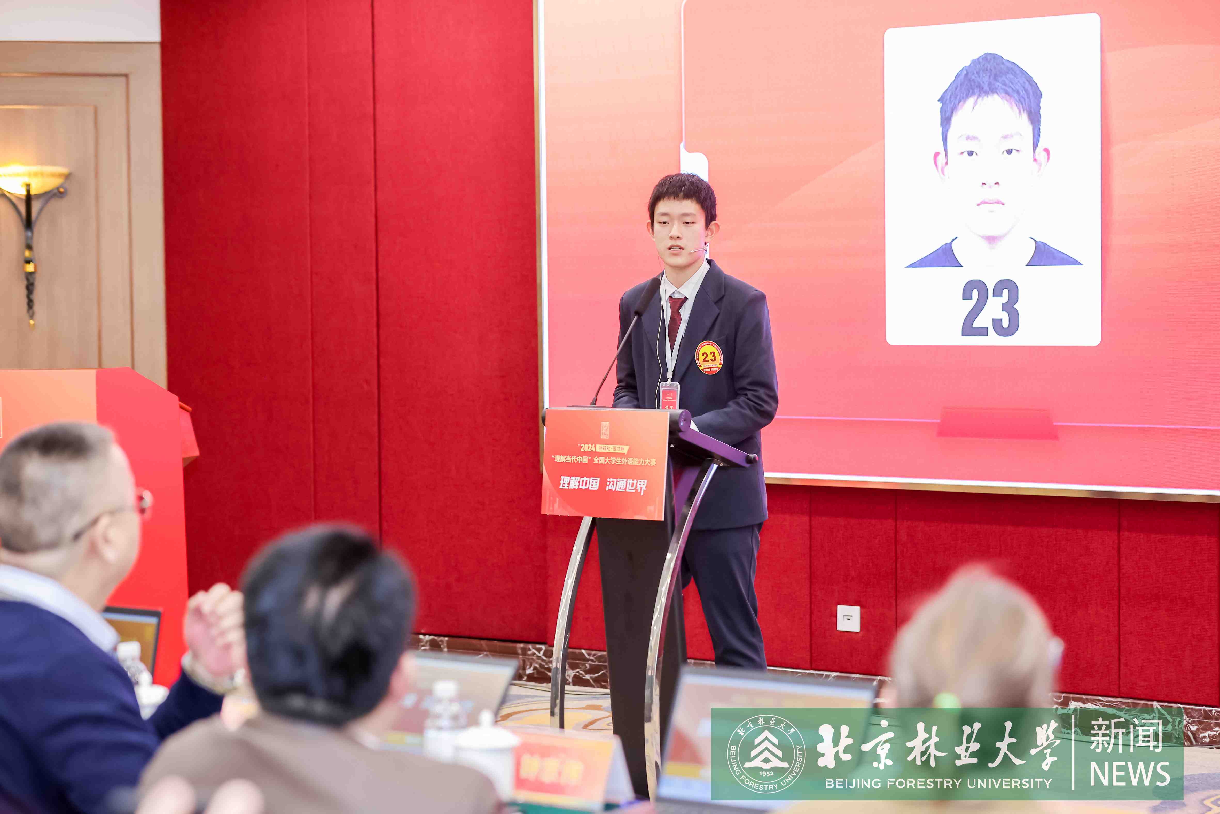 在即兴演讲中,刘匡迪抽到了与“中国承担处理气候变化责任”相关的话题。他以自己家乡生态文明建设的故事为引入,论述了中国承担起面对气候变化的大国责任,得益于习近平生态文明思想的理论优势、绿色科技的技术优势以及构建人类命运共同体的目标优势。最终,他依靠其扎实的语言技能和出色的跨文化交流能力,赢得了评委的肯定,荣获全国金奖,为我校赢得了荣誉。