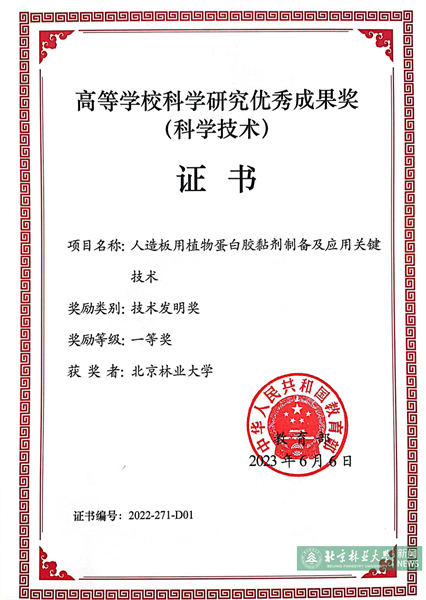 材料学院李建章教授团队完成的“人造板用植物蛋白胶黏剂制备及应用关键技术”获技术发明奖一等奖。该成果针对人造板甲醛释放问题,发明植物蛋白胶黏剂耐水耐久增强技术,攻克产业化应用关键技术难题并实现规模化生产,为实现木材加工业高质量发展、解决人居环境甲醛污染问题及保障人民健康提供了科技支撑。