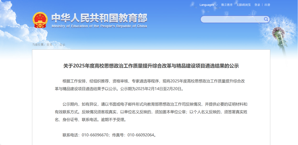 近日,教育部公示了2025年度高校思想政治工作质量提升综合改革与精品建设项目,我校学生社区获评全国高校示范“一站式”学生社区,《全员心理育人“五助工作法”》获高校学生心理健康教育指导典型案例。