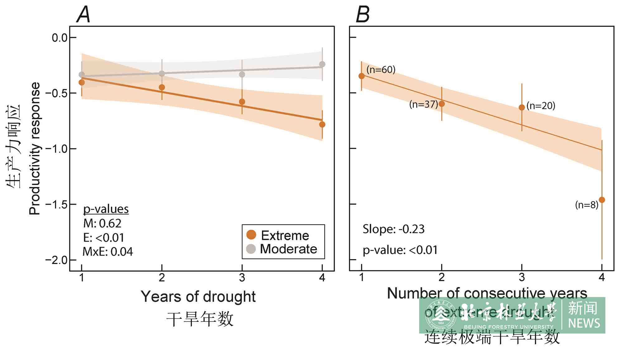 干旱持续时间对中等和极端干旱强度下生产力响应的影响