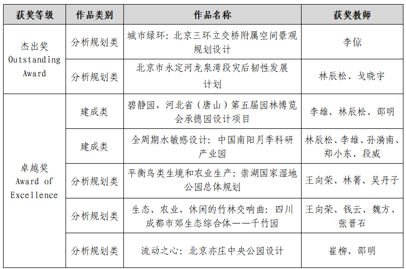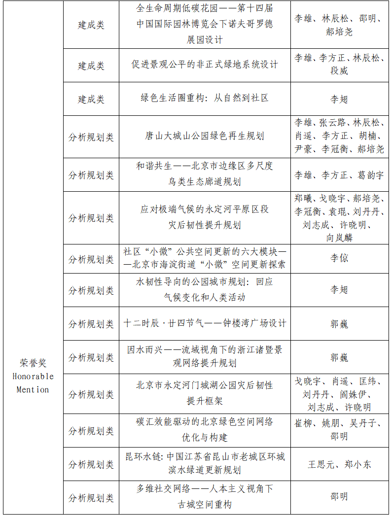 2024 IFLA AAPME AWARDS获奖名单(北京林业大学)