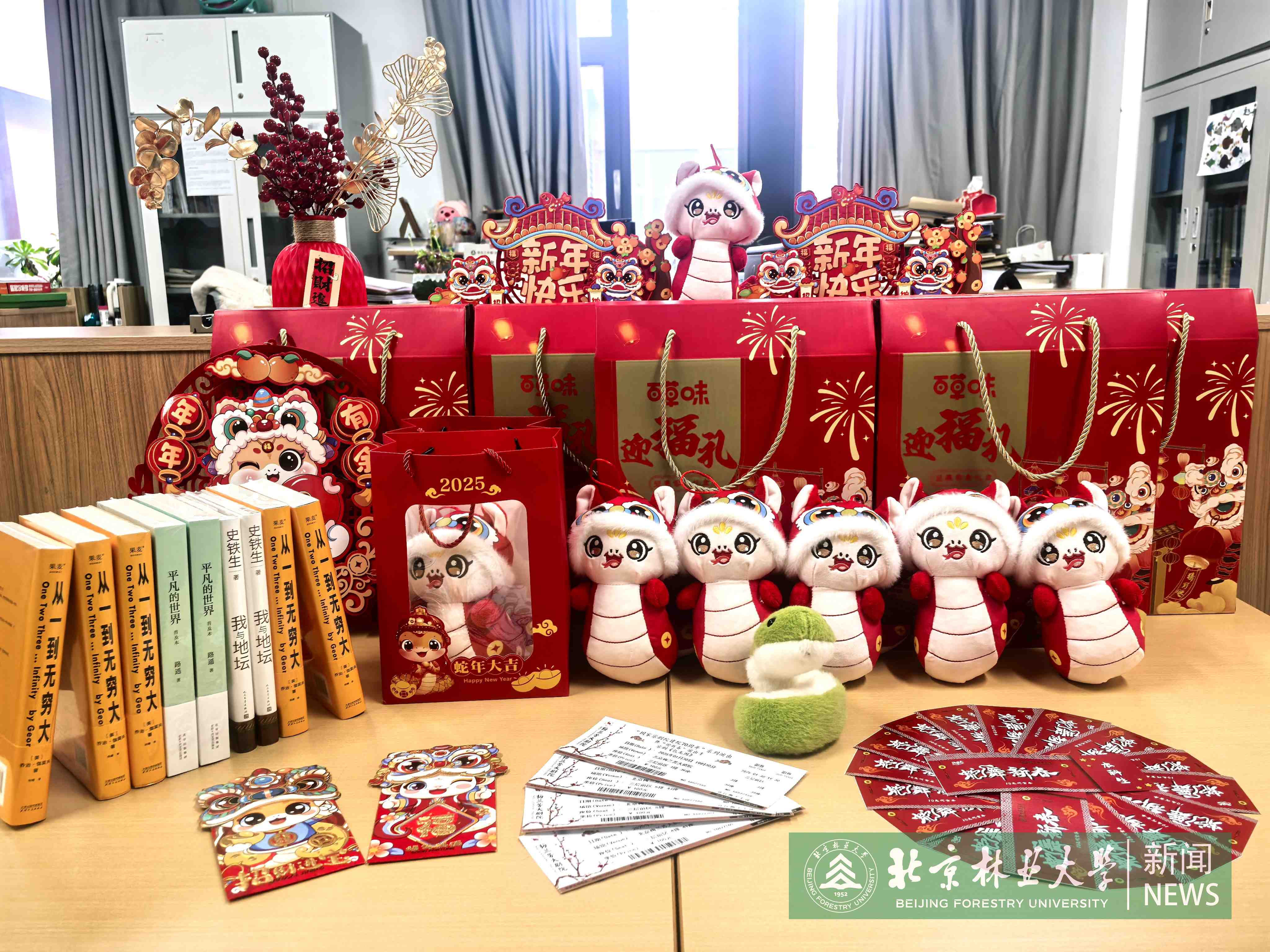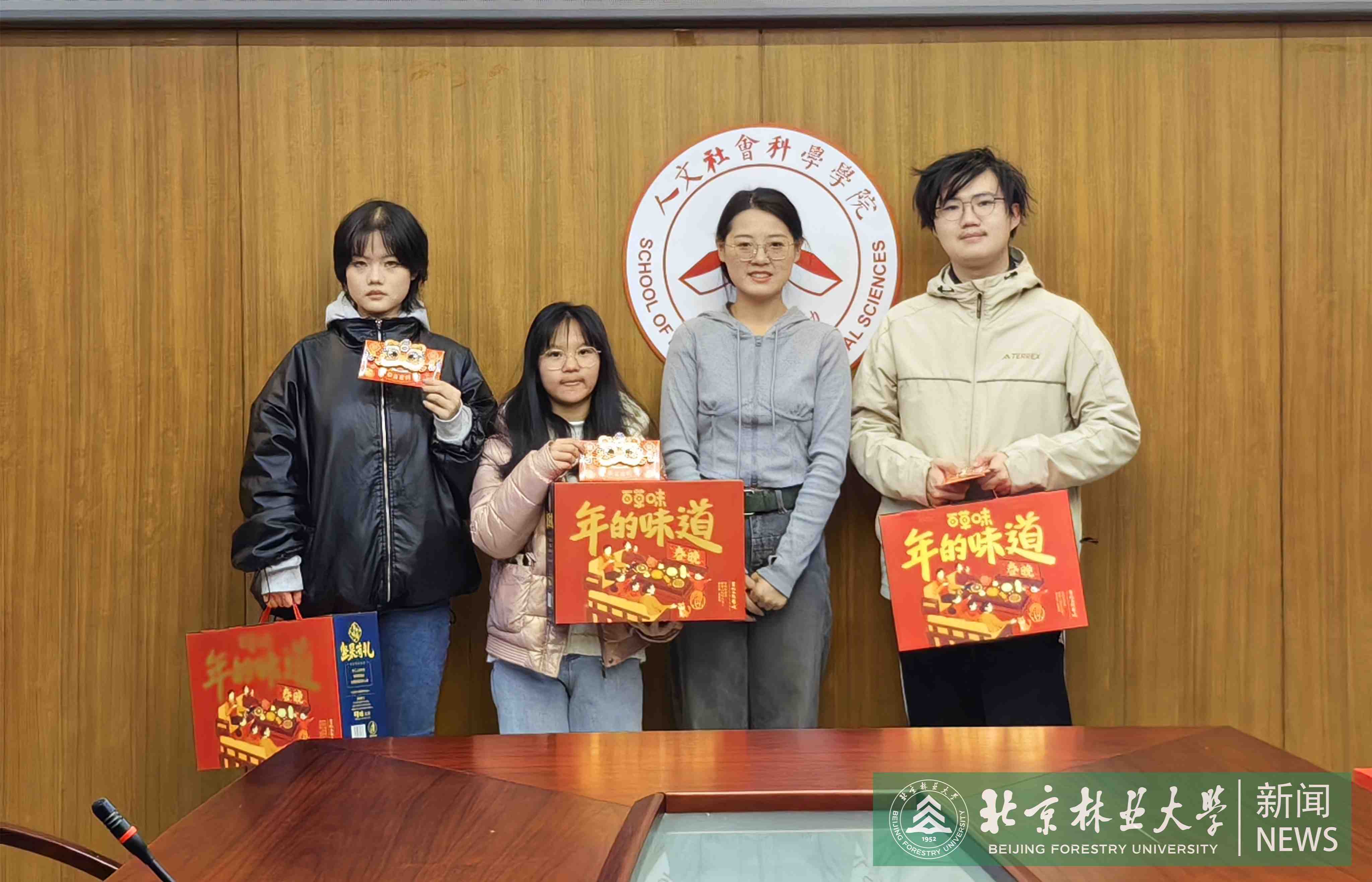 与会领导老师为留校过年的家庭经济困难学生送上了“阳光新年礼包”,包括生肖玩偶、学习书籍、压岁红包、干果礼盒以及梅兰芳大剧院《包龙图》戏票,让留校学生过好“温暖年、文化年”。学生们也将座谈会前亲手书写的福字春联和剪纸作品赠予老师,藏族学生献上哈达,师生间互送新春祝福。