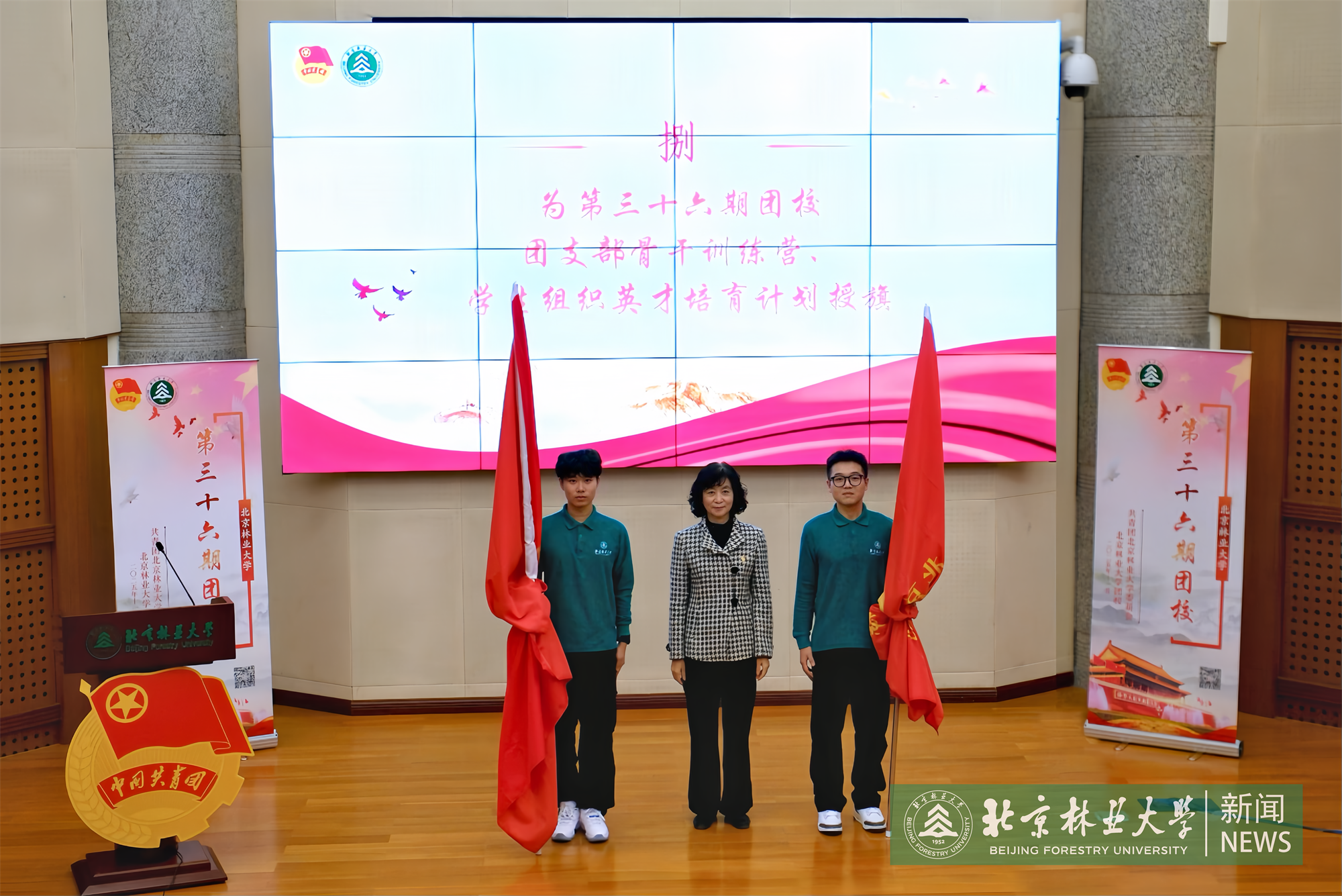 会上,孙信丽为北京林业大学第三十六期团校团支部骨干训练营、学生组织英才培育计划授旗。