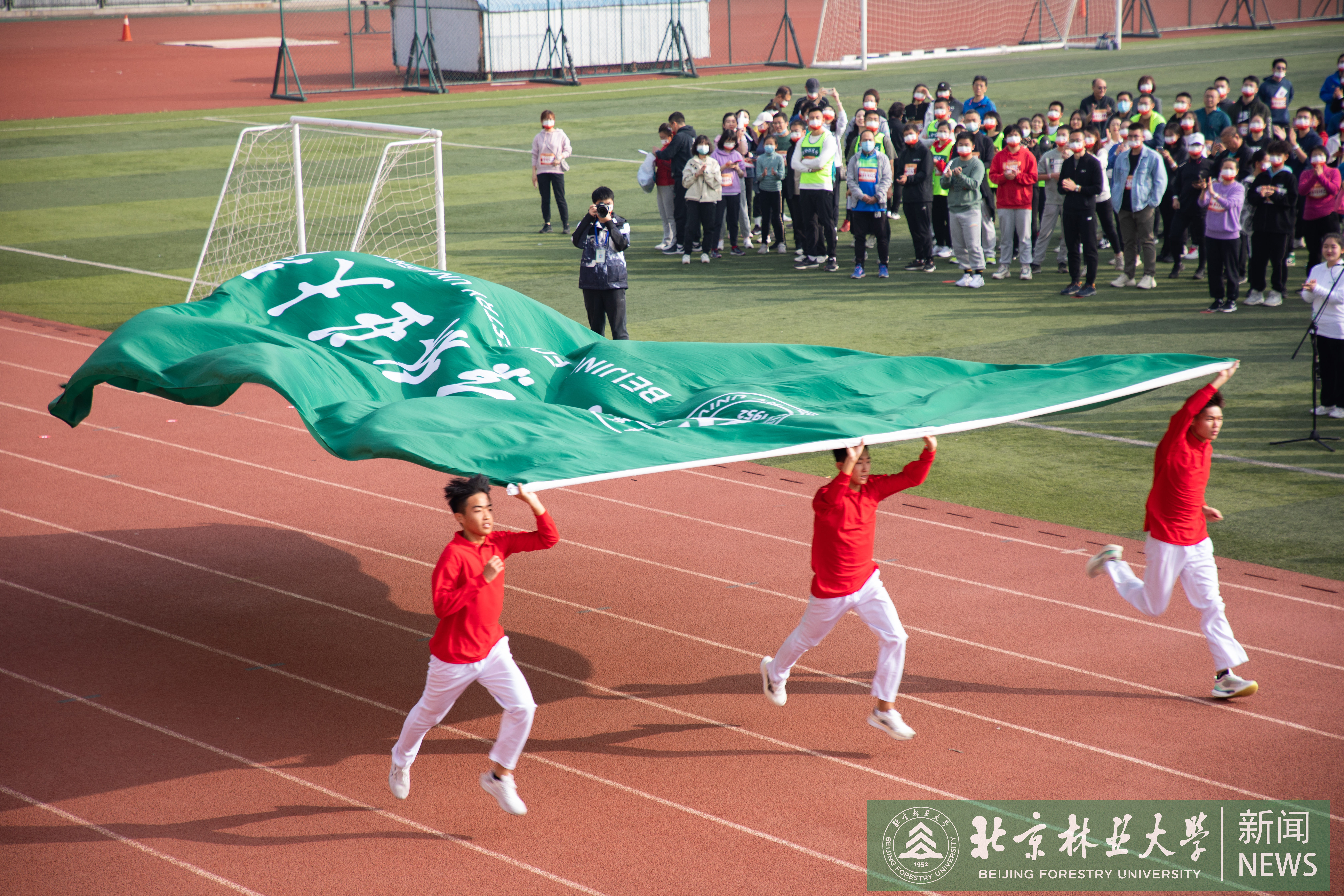 开幕式上,三位北林健儿高擎校旗,以昂扬的姿态奔跑入场,环绕操场一周。巨幅的校旗在健儿们手中高高飘扬,正如七十年来不断拼搏奋斗的北林人和历久弥新的北林精神。70位校庆志愿者与70位师生代表列队两行,在全场师生的注目礼下,接过校旗,缓缓传递。70次手手相传,象征着七十载栉风沐雨、历久弥坚;七十载勇担使命、矢志笃行;七十载奋楫扬帆、再奏新章。