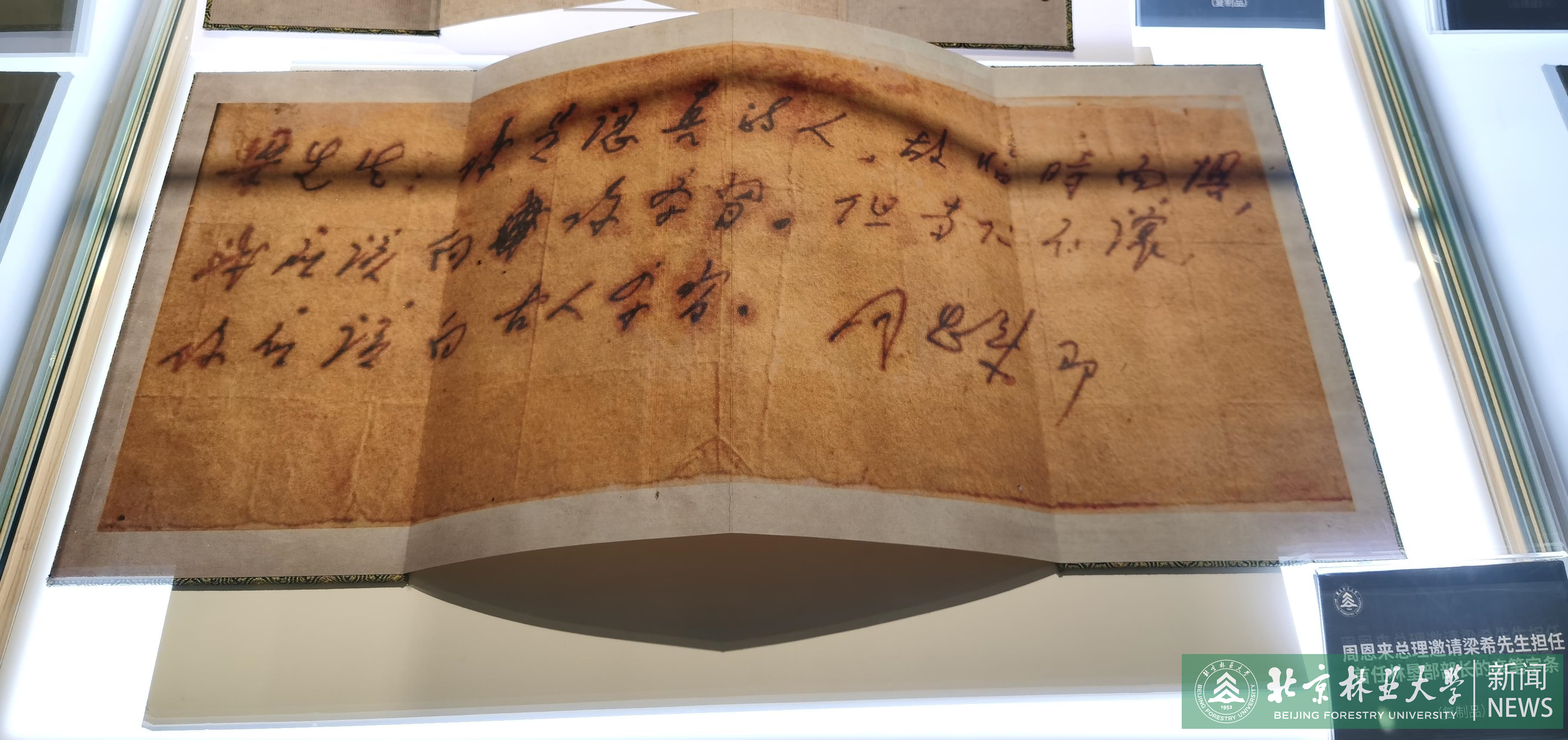 这张周恩来总理邀请梁希先生担任首任林垦部部长的亲笔字条在校史馆第一展厅展出。