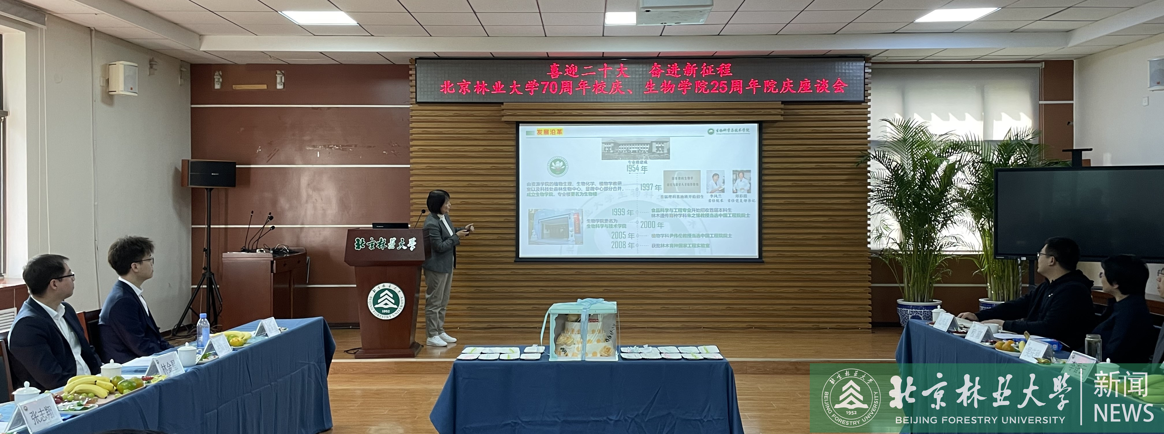 生物学院院长汇报了学院25年的风雨历程,集中展示了历史沿革和难忘瞬间,从学科分布、人才队伍、平台建设、办学成果等多方面介绍了发展成就,面向未来提出学院将瞄准学科前沿,围绕国家重大需求,开展森林生物学基础与生物育种、生物经济领域应用基础研究,打造国际一流“森林生物学研究型学院”。