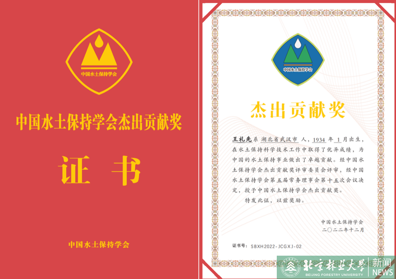 我校王礼先教授荣获第一届中国水土保持学会杰出贡献奖。中国水土保持学会杰出贡献奖旨在表彰对我国水土保持事业作出卓越贡献、取得突出成就的科技工作者。今年此奖项首次颁授,全国只有4人获此殊荣,另外三人分别为我国第一位“泥石流院士”崔鹏、中科院水利部水土保持研究所著名研究员刘国彬、中国水利水电科学研究院原总工正高级工程师曹文洪。