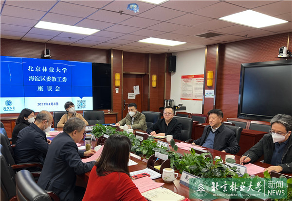 我校党政办负责人、综合保障部党委书记、北林附小校长,海淀区教育两委相关科室负责人参加座谈交流。