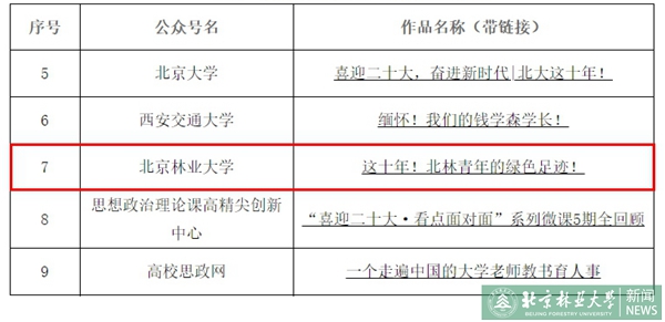 2023年初,我校官微收到高校重点建设公众号项目组发来的表扬信,指出“北京林业大学微信公众号以精准切口的选题,精心制作的内容,温暖人心的互动,受到了广大师生的欢迎,起到了很好的示范引领作用。”