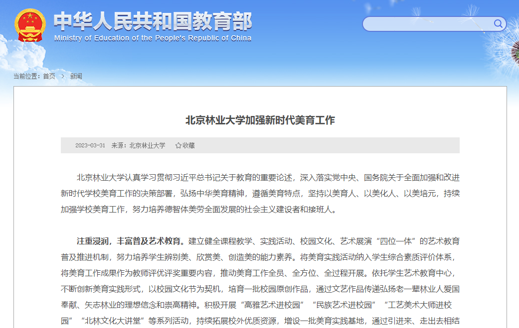 报道链接:教育部:北京林业大学加强新时代美育工作