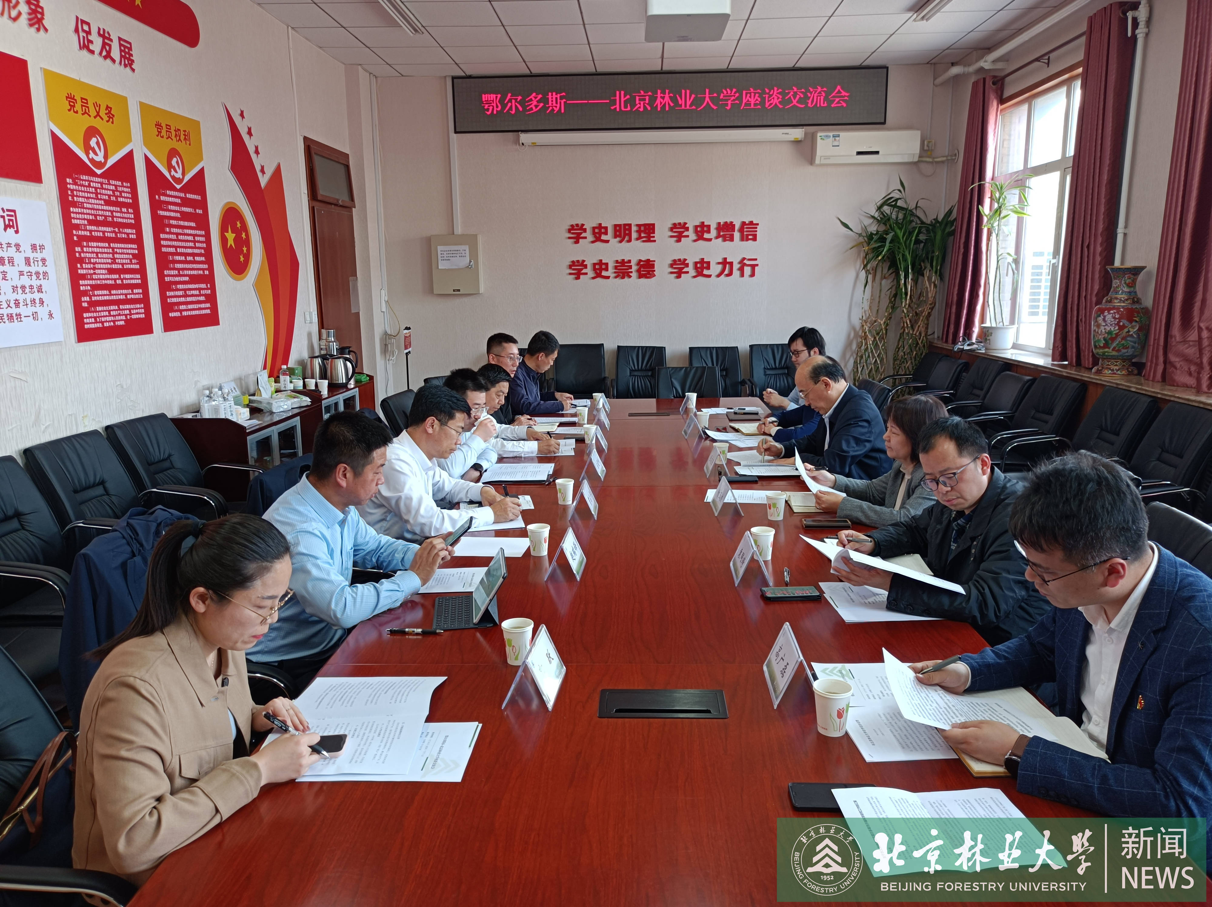 近日,鄂尔多斯市林草局局长及相关单位代表一行来校座谈交流,副校长张志强出席会议。
