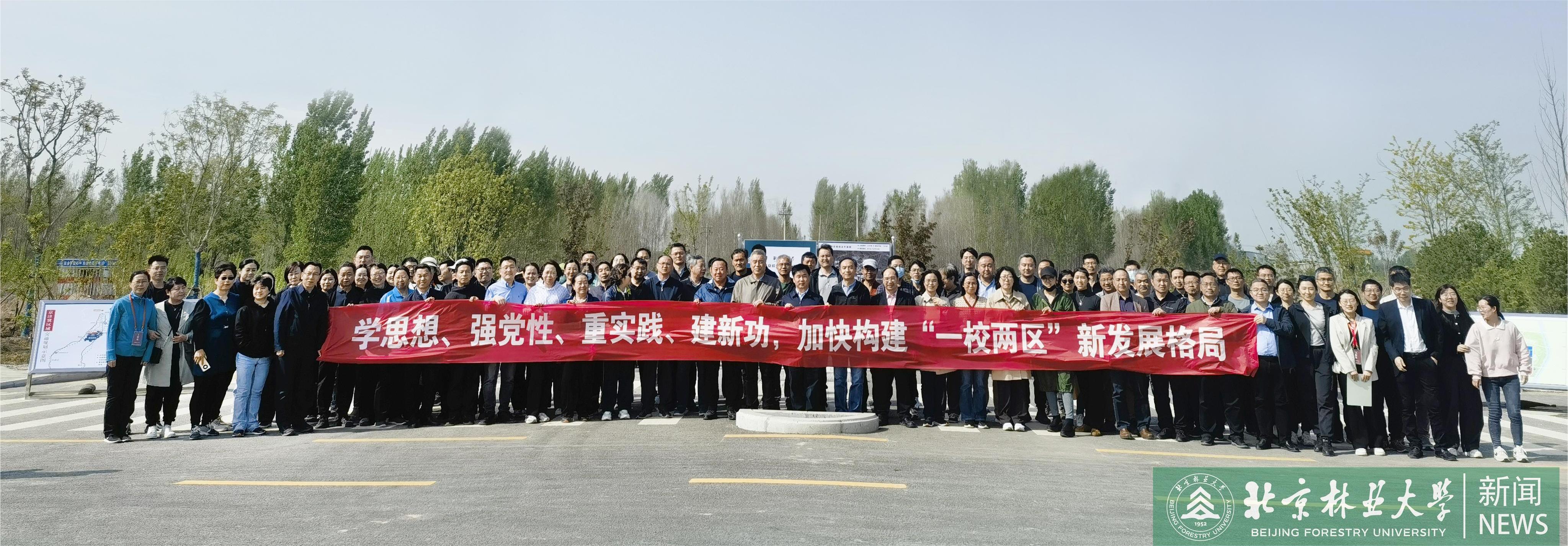 在雄安新校区选址地,校区规划建设指挥部工作人员从地理位置、建设目标、总体规划、空间结构和功能分区、文化传承等方面全面介绍新校区基本情况和规划布局,展现新校区规划设计的世界眼光、国际标准、中国特色、高点定位;雄安集团城市发展有限公司介绍了校区周边住房、医院、商业中心等配套设施的建设规划,让干部教师更加真切感受到雄安校区的美好图景和优质条件,进一步拉近了与“北林雄安,未来已来”的距离。随后,干部教师实地查看白沟引河、千年秀林等新校区选址地周边环境。