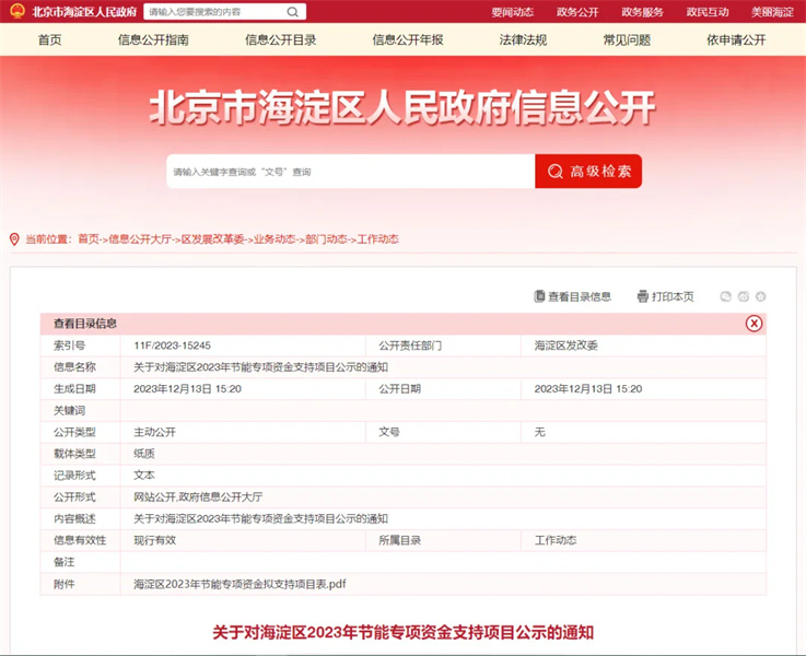 根据《海淀区节能减排专项资金管理办法》(海行规发〔2019〕8号)《海淀区2023年节能专项资金项目申报指南》相关要求,海淀区组织开展了2023年度节能专项资金项目申报和评审等相关工作。本次申请历经初审、专家评审、公示等环节,最终通过第三方机构节能量复核,我校所申报项目每年可节约能源消费量512.85吨标准煤/年,节省能源使用经费共计108.25万元/年。