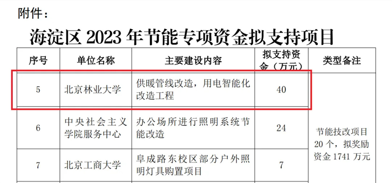 近日,海淀区发展和改革委员会发布了《关于对海淀区2023年节能专项资金支持项目公示的通知》,我校通过实施供暖管线改造和用电智能化改造工程项目,获批节能奖励资金40万元。