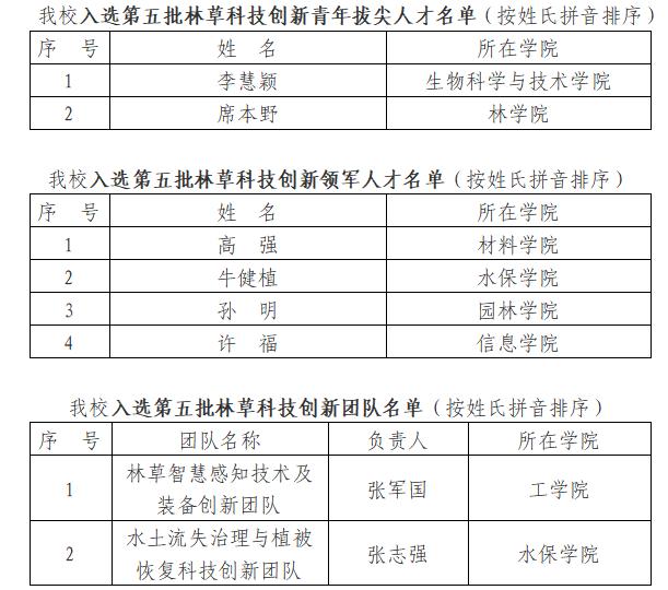 近日,国家林业和草原局公布了第五批林草科技创新人才和团队评审结果,我校2位教师入选林草科技创新青年拔尖人才,4位教师入选林草科技创新领军人才,2支团队入选林草科技创新团队。
