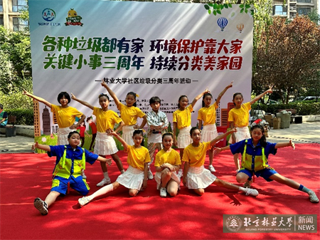 活动现场,林大附小的小朋友们进行了垃圾分类主题的舞蹈表演,社区林苑舞蹈队献上了精彩苗族舞蹈,友邻单位演唱了优美的歌曲。