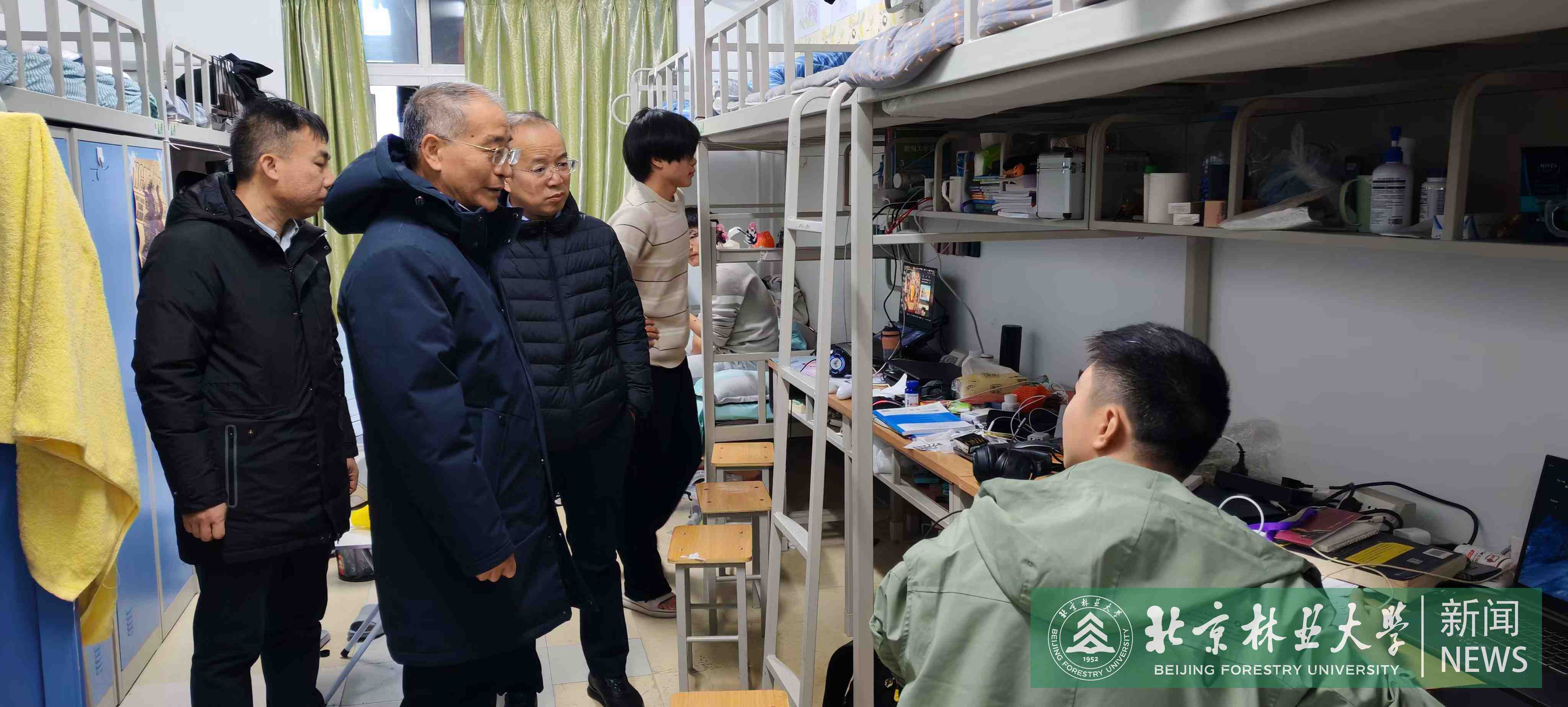 最后,检查组来到学12楼。邹国辉走进学生宿舍,与同学们亲切交谈,了解他们的生活情况,并对宿舍的卫生状况、用电安全等进行了检查。他叮嘱同学们要遵守宿舍管理制度,注意用电防火安全,严禁在宿舍内使用大功率违规电器,养成良好的生活习惯,共同营造安全、整洁、舒适的住宿环境。针对学生宿舍常见隐患问题,他要求宿管部门加强对学生宿舍的日常巡查和学生宣传教育力度,及时发现并纠正学生的不安全行为。