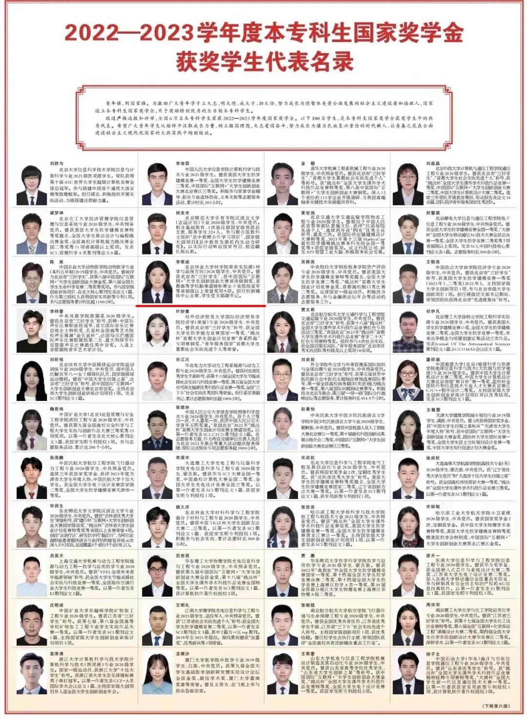《人民日报》刊登的100名本科专科生国家奖学金获奖学生代表、100名研究生国家奖学金获奖学生代表,是全国6万名2022-2023学年度本专科生国家奖学金获得者、4.5万名2022-2023学年度研究生国家奖学金获得者中的优秀代表。