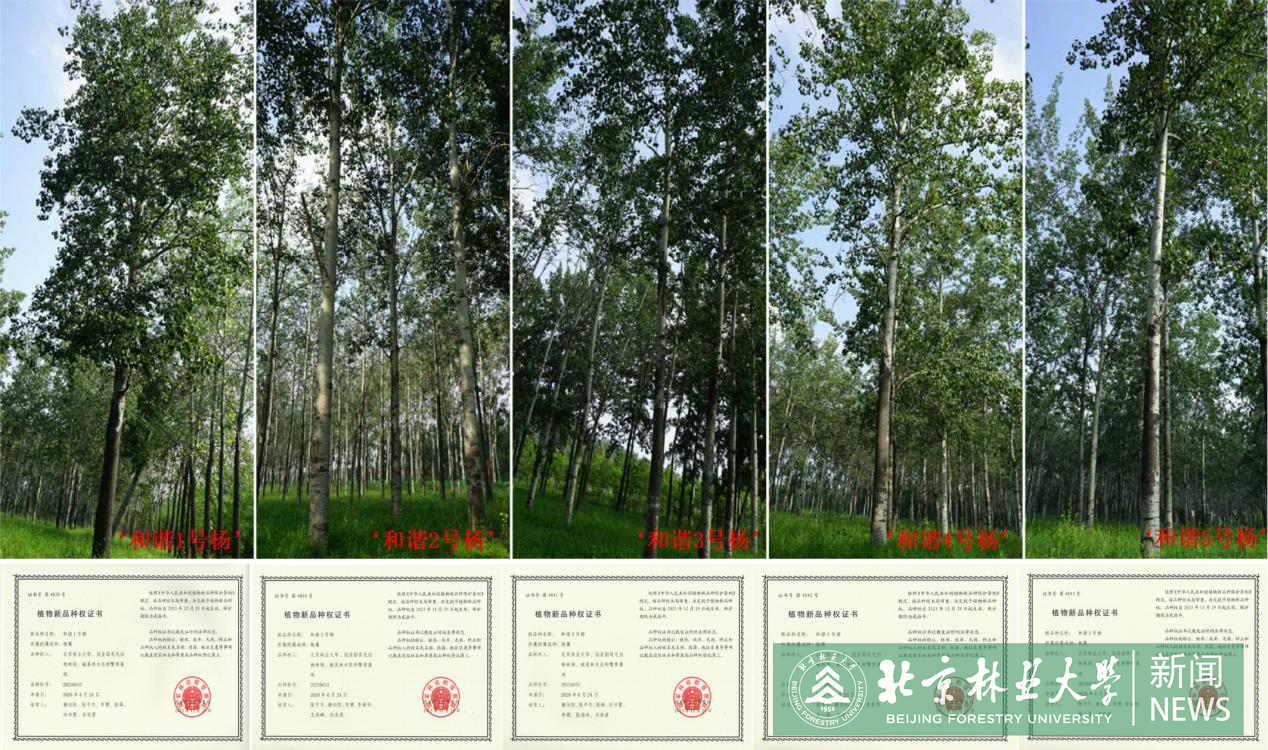 ‘北林雄株1号’、‘北林雄株2号’是由我校林木育种与生态修复国家工程研究中心康向阳教授团队历时22年,综合细胞遗传学与花粉染色体加倍、花粉辐射、杂交育种等技术,精心选育出来的三倍体新品种,如今已成为我国北方有效解决杨树飞絮问题的适宜替换品种,逐步推广应用到了天津、河北、山东、山西、河南、新疆等地,助力当地生态建设和城乡绿化发展。