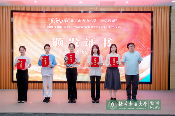 5月10日,“见字如面”北京市大中小学“大思政课”主题短视频征集展示活动颁奖大会暨宣讲团成立仪式在北京印刷学院举行,我校水土保持学院2022级本科生王雨萱提交的作品《我们的“村晚”》荣获特等奖,并作为“行走故乡 读懂中国”学生宣讲团代表在现场作了微宣讲。
