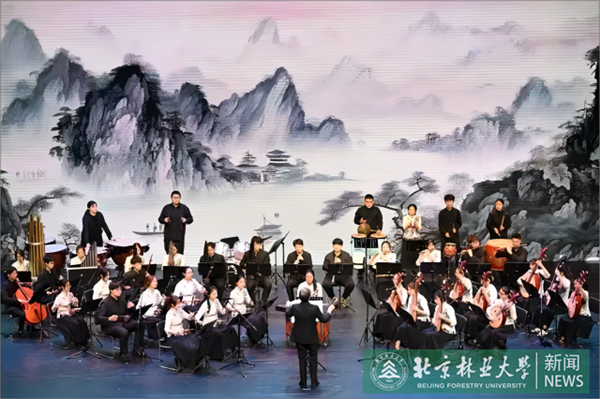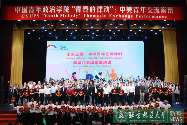 在美国代表团告别演出暨中国青年政治学院“青春的律动”中美青年交流演出上,我校学生民乐团演奏了极具豪情壮志的中国乐曲《好汉歌》和西方拉丁爵士风格的《龙舌兰》等两首经典作品,既体现中美各自文化特色,又以我国民族乐器展现文化融合的魅力,将演出氛围推向高潮。演出尾声,中美青年代表共同唱响《凤凰花开的路口》,用歌声传递对共创美好未来的期许。
