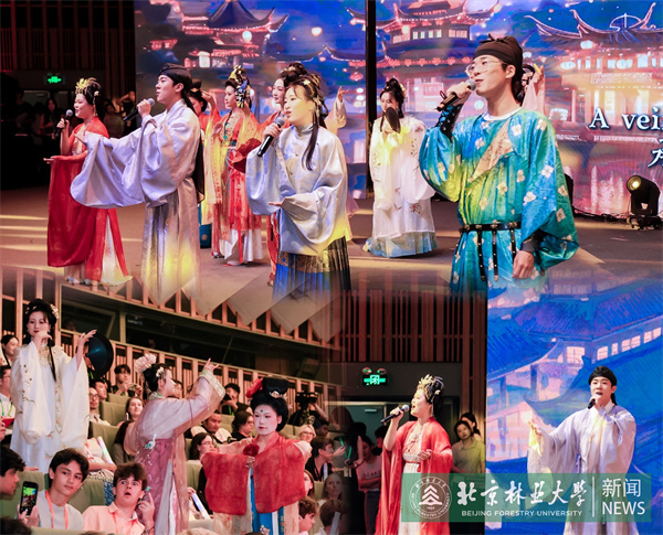 在“Bridge”中美青年友好会见主题音乐会上,我校学生合唱团身着靓丽华服,青春演绎歌曲《万疆》,以悠扬国风旋律配合华服走秀惊艳全场,展现中华传统文化之美,美国青年纷纷与演员合影留念,在惊叹中感受中华文化的深厚底蕴。