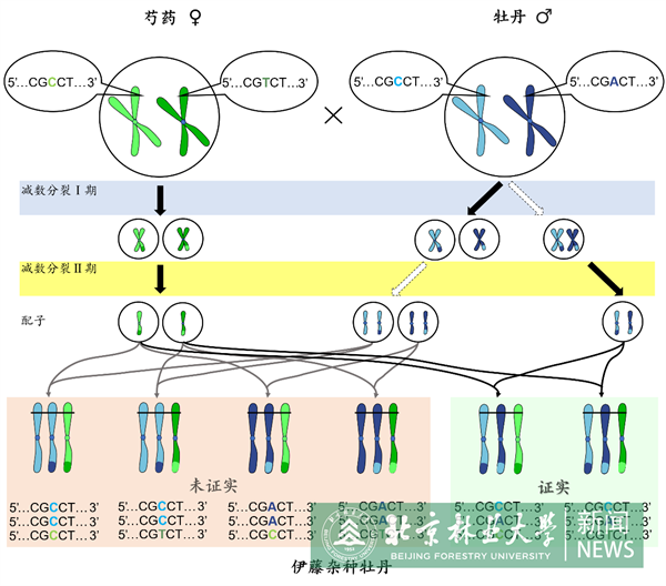 图4. 牡丹与芍药杂交形成伊藤杂种牡丹的遗传模型
