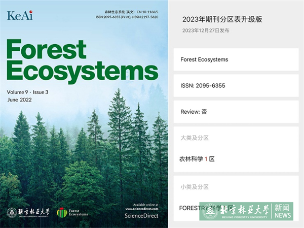 日前,《2023年中国科学院文献情报中心期刊分区表》正式发布。我校主办的两本英文期刊表现亮眼,《森林生态系统(英文)》(Forest Ecosystems)蝉联入选农林科学大类1区,林学小类1区;《鸟类学研究(英文)》(Avian Research)入选生物学大类2区,鸟类学小类2区。