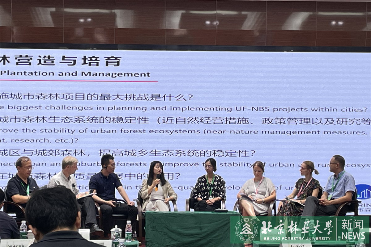 张新娜副教授以“UF-NBS在北京和布鲁塞尔的研究与应用”为题,在城市森林营造与培育分会场作专题报告,同时作为互动嘉宾参与专题讨论。