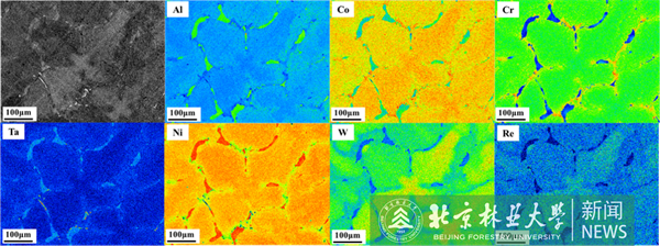 图2 镍基单晶高温合金枝晶组织EPMA元素分布