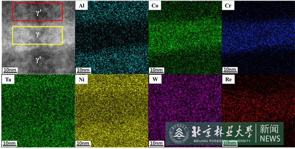 图1 镍基单晶高温合金γ/γ'两相EDS元素分布