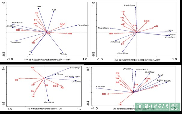 植被属性与土壤性质之间的冗余分析与贡献度分析