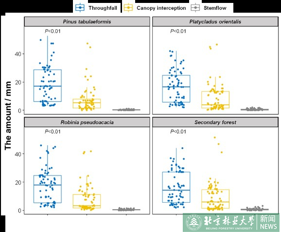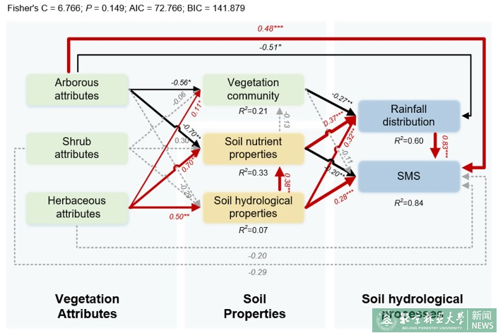 不同植被类型下的降雨再分配过程与结构方程模型分析