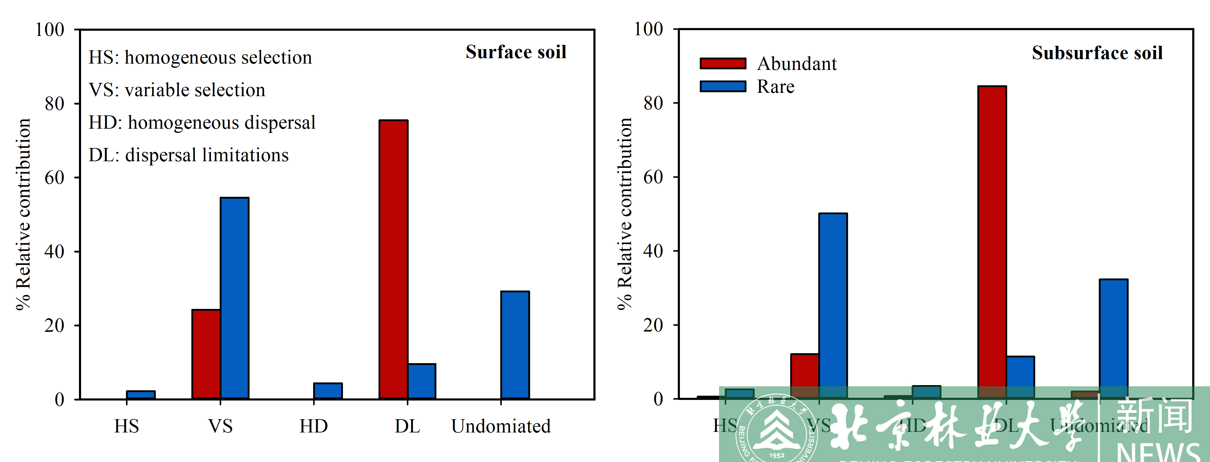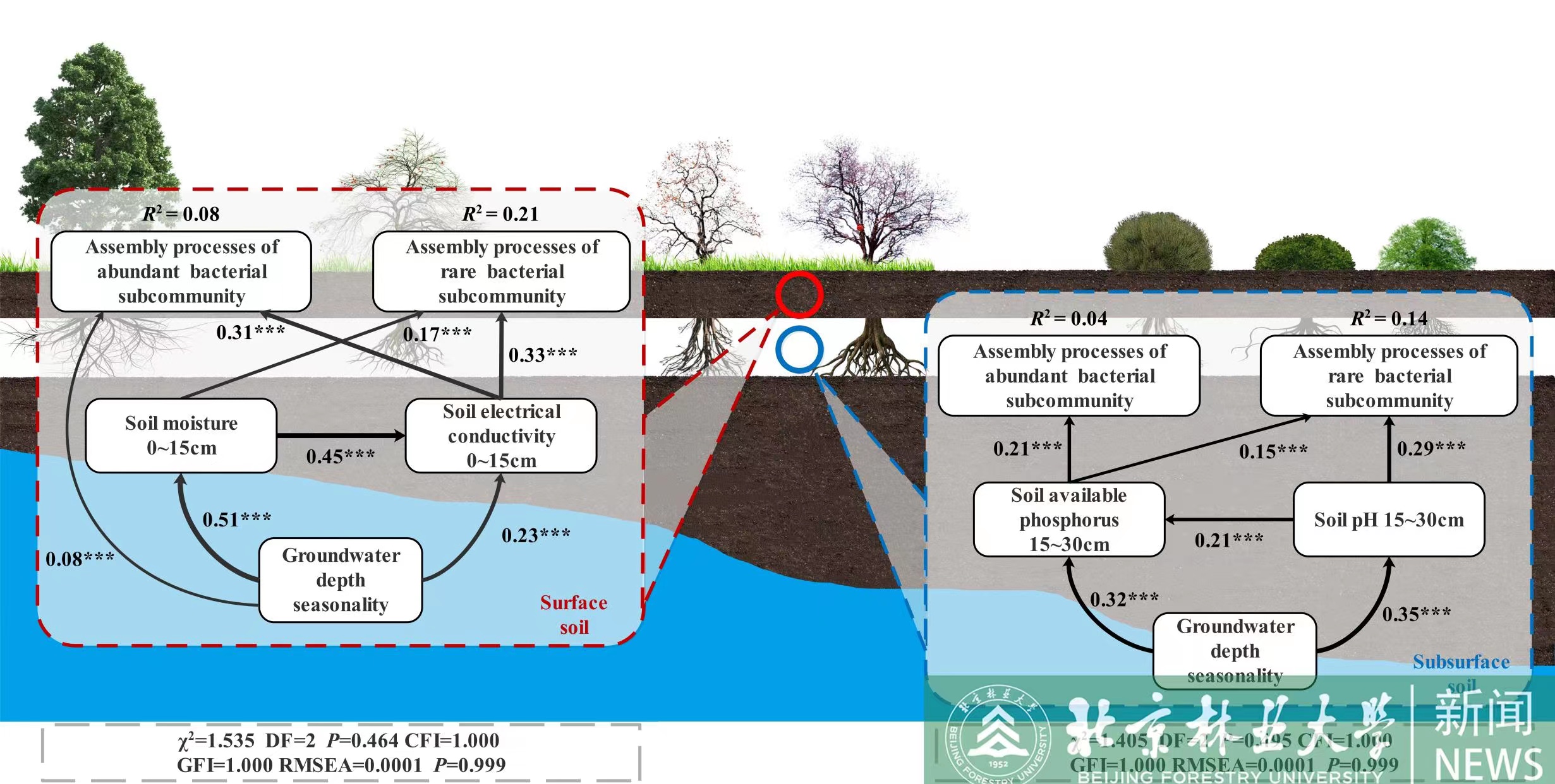 基于不同细菌类群和谱系格局定量推断细菌群落构建机制,阐明地下水位季节性导致的土壤环境异质性调控细菌优势与稀有类群的群落构建过程,认为河流间歇性补水是维持干旱区绿洲-荒漠生态系统生物多样性重要措施。