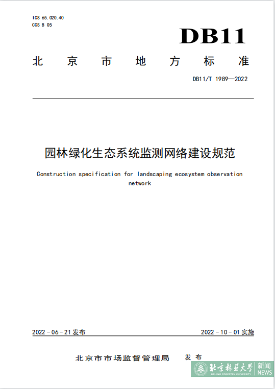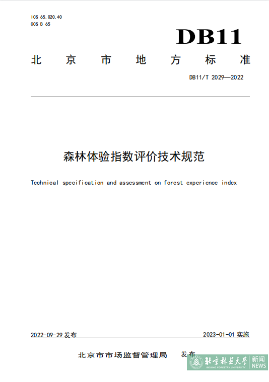 “森林体验指数”是北京园林绿化生态监测网络 (Beijing Ecological Observatory Network,BEON)的首个生态数据产品。通过全市12个 BEON 监测站点所提供实时、高频、连续的生态系统要素监测数据,实现了“森林体验指数”数据产品的实时计算与可视化。这一过程中,查天山教授团队先后攻克了指数研发、算法优化、指数实时计算、结果自动可视化、标准制定、指数发布等多个技术难关,并以北京林业大学为第一起草单位编制了《园林绿化生态系统监测网络建设规范》(DB11/T 1989-2022)和《森林体验指数评价技术规范》(DB11/T 2029-2022)地方标准,已由北京市市场监督管理局正式发布。