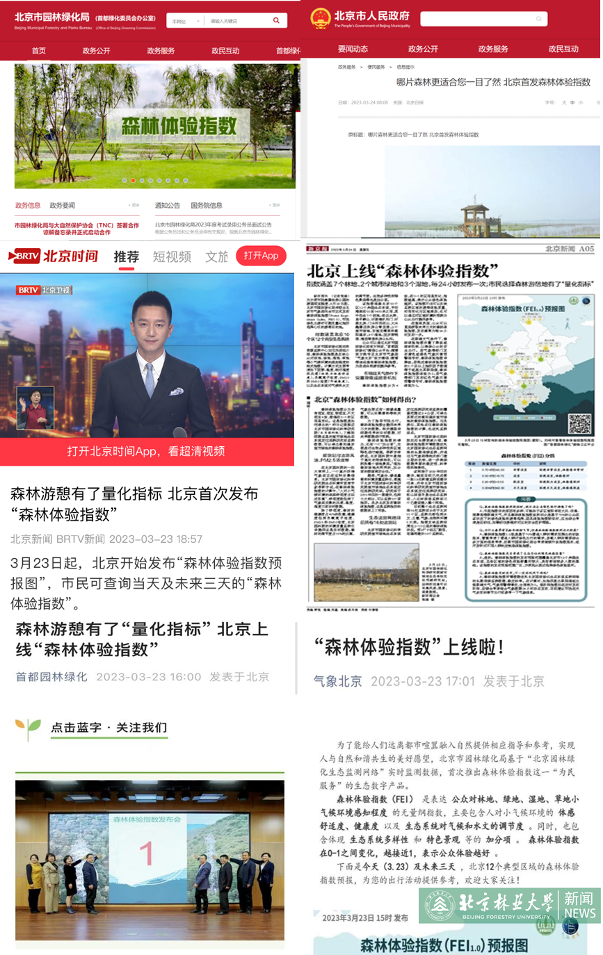 近日,北京市园林绿化局联合北京市气象局,发布生态数据产品“森林体验指数”,这是北京市首次推出“为民服务”生态数据产品。我校水保学院查天山教授团队作为森林体验指数技术研发团队,为该指数的顺利发布与持续预报提供了科学可靠的技术支撑。