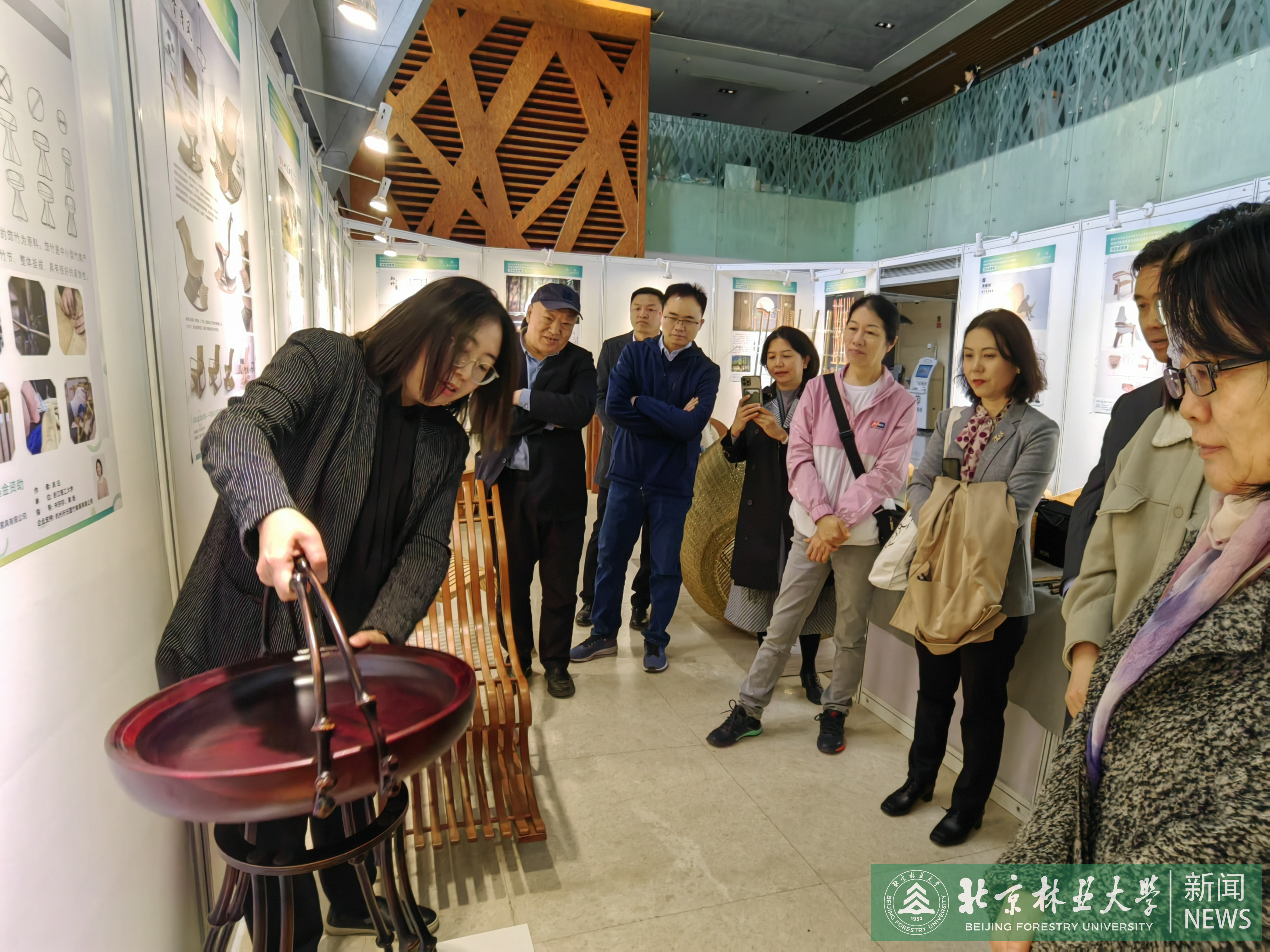 近日,由国家艺术基金资助、北京林业大学主办,材料学院承办的国家艺术基金2020年度艺术人才培养资助项目《传统竹家具的传承与创新设计人才培养》结项成果展举办。国际竹藤中心绿色经济研究所副所长、中国竹产业协会副秘书长刘志佳,原国际竹藤组织东道国事务部主任傅金和,科技处相关负责人、学院领导班子成员、学员及师生代表参加活动。活动由材料学院院长主持。