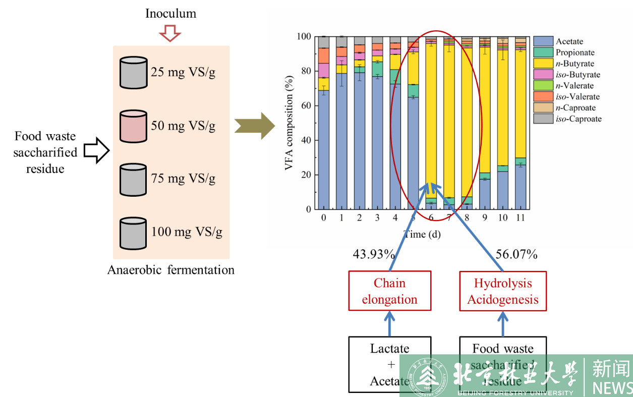 近日,环境学院张盼月教授课题组在正丁酸生产领域取得新进展,为生产正丁酸提供了一条废物回收、低成本的新途径。相关研究成果以“Volatile fatty acid production in anaerobic fermentation of food waste saccharified residue: Effect of substrate concentration”(餐厨垃圾糖化残渣厌氧发酵挥发性脂肪酸的生产:底物浓度的影响)为题在环境科学与生态学领域一区Top期刊《Waste Management》(IF=8.816)上发表。