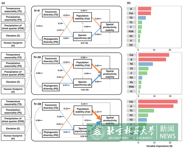 我校全国高校黄大年式教师团队、国家林草局林业和草原科技创新团队——林学院森林经营教师团队,以涵盖东北温带天然林的网格状布局样地为基础,围绕生物多样性与生态系统空间稳定性关系取得了新进展。研究成果以“Environmental filtering drives biodiversity–spatial stability relationships in a large temperate forest region”为题,发表在国际知名期刊《Functional Ecology》(影响因子6.282,环境科学与生态学一区Top)上。