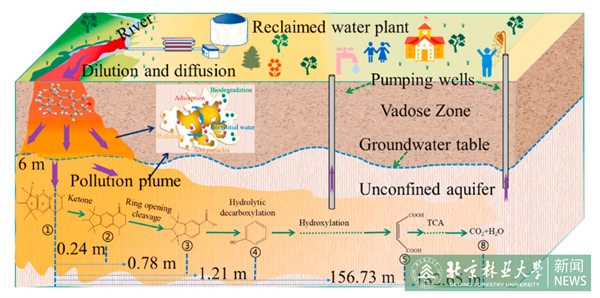 由于水资源短缺,再生水对于补给河流径流量和维持水环境生态平衡具有重要作用。然而,合成麝香这类药物及个人护理品作为一种应用广泛的香料添加剂,因其在水环境中的检出频率高、蓄积性强和低剂量毒性而受到广泛关注,特别是佳乐麝香(HHCB)。因此,了解HHCB随地表水入渗穿透包气带进入地下水的时空分布并预测其风险演化趋势,对于污染扩散的阻控研究具有重要的意义。