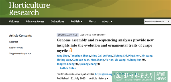 近日,园林学院国家花卉工程技术研究中心张启翔教授团队在园艺学顶刊Horticulture Research (一区TOP,IF5yr = 9.0)在线发表了题为“Genome assembly and resequencing analyses provide new insights into the evolution and ornamental traits of crape myrtle”的研究论文,完成了首个染色体水平的高质量紫薇基因组组装和73份资源重测序研究,并整合重测序、BSA、转录组技术解析了紫薇株型、花色、叶色等重要观赏性状形成机制,为紫薇功能基因组学研究、优异种质基因资源挖掘、目标性状定向改良等搭建起重要平台。