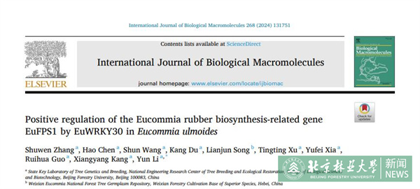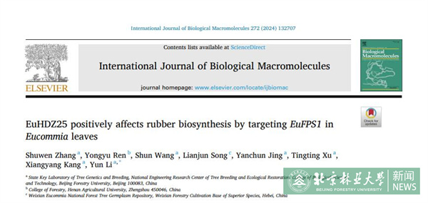 近日,我校生物科学与技术学院杜仲育种团队在International Journal of Biological Macromolecules(一区,TOP期刊,IF=8.2)杂志分别发表了题为"EuHDZ25 positively affects rubber biosynthesis by targeting EuFPS1 in Eucommia leaves"和"Positive regulation of the Eucommia rubber biosynthesis-related gene EuFPS1 by EuWRKY30 in Eucommia ulmoides"的研究论文,揭示了转录因子EuHDZ25、EuWRKY30调控杜仲胶合成的分子机制,及其在三倍体杜仲叶片胶含量升高中的作用。