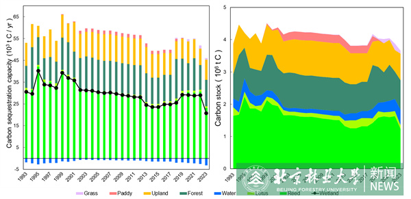 “白洋淀生态固碳能力评估与调控”项目聚焦白洋淀典型生态系统固碳能力调研与固碳潜力分析等科技需求,创建了基于“淀水林田草”生命共同体的生态系统分类、遥感数据同化等一批新方法,优化了白洋淀森林碳储量本底调查和年度监测精度,揭示了白洋淀近30年典型生态系统格局的演变规律与驱动机制;首次评估出白洋淀总碳储量和固碳能力,阐明固碳机制,初步构建了高碳汇低BVOCs排放树种筛选体系和高碳汇低BVOCs排放水生植物筛选体系,创新提出基于生态调水与植物配置优化的固碳能力提升技术模式。研究成果将为深入开展白洋淀生态环境修复与固碳能力提升提供科技支撑。