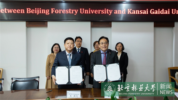 会上,双方共同签署了北京林业大学和日本关西外国语大学合作谅解备忘录、学生交流协议等3份合作协议。
