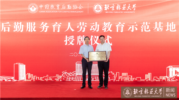 会上,刘建平为我校授牌,校长安黎哲代表我校接牌。牛维麟宣读《关于授予北京林业大学“后勤服务育人劳动教育示范基地”称号的函》。我校综合保障部党委书记汇报了劳动教育开展情况。