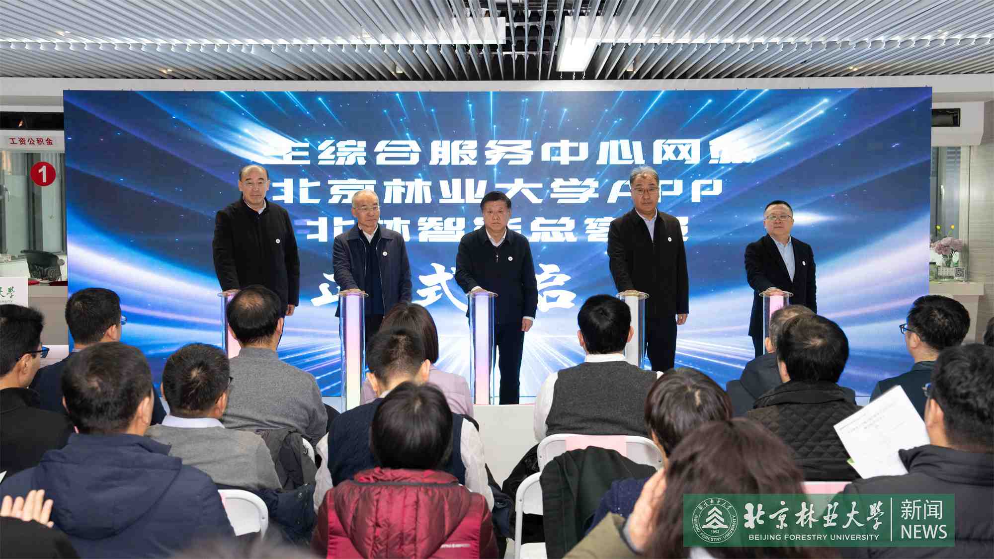 校领导为师生综合服务中心网站、北京林业大学APP及北林智能总客服正式启用按下启动键。