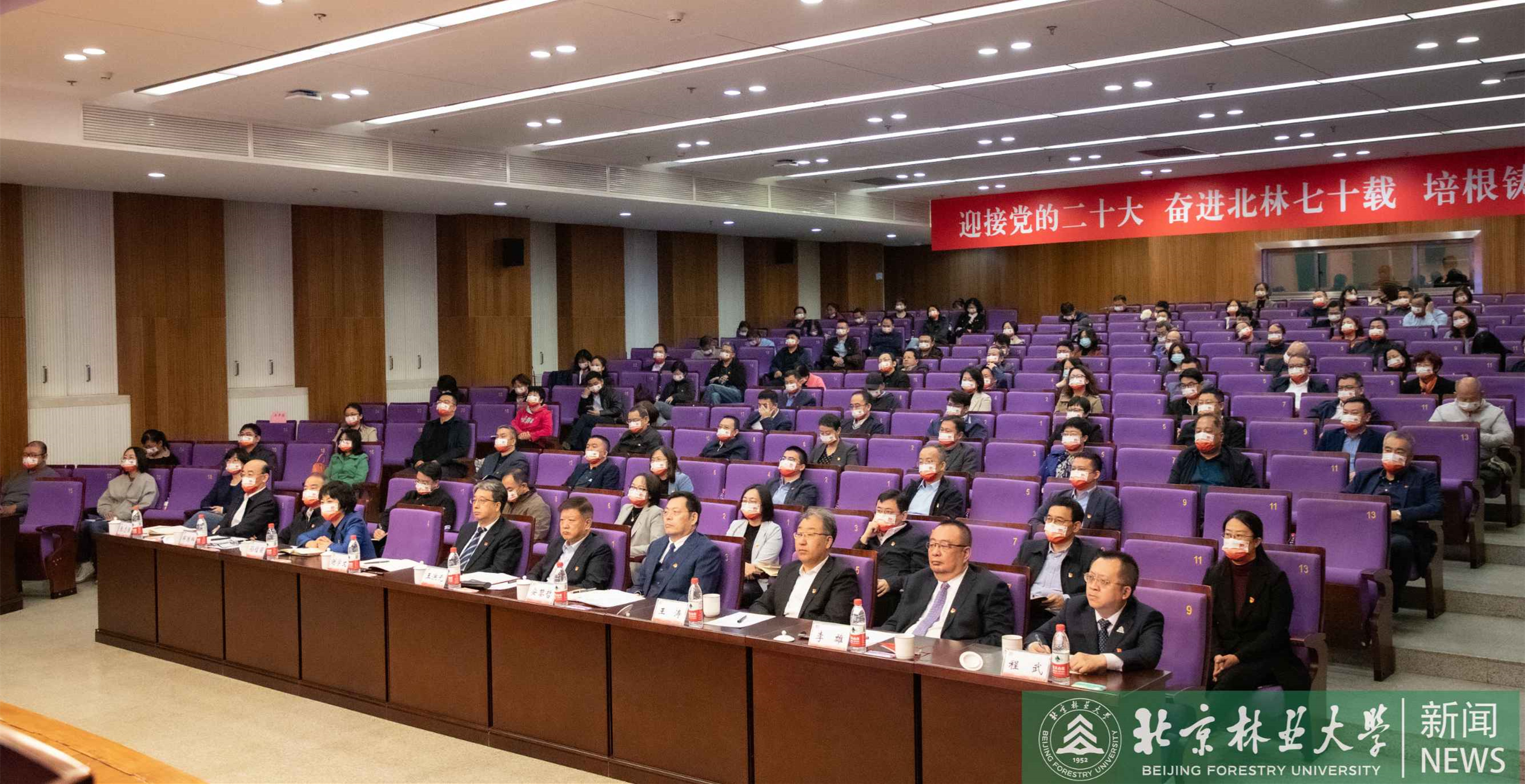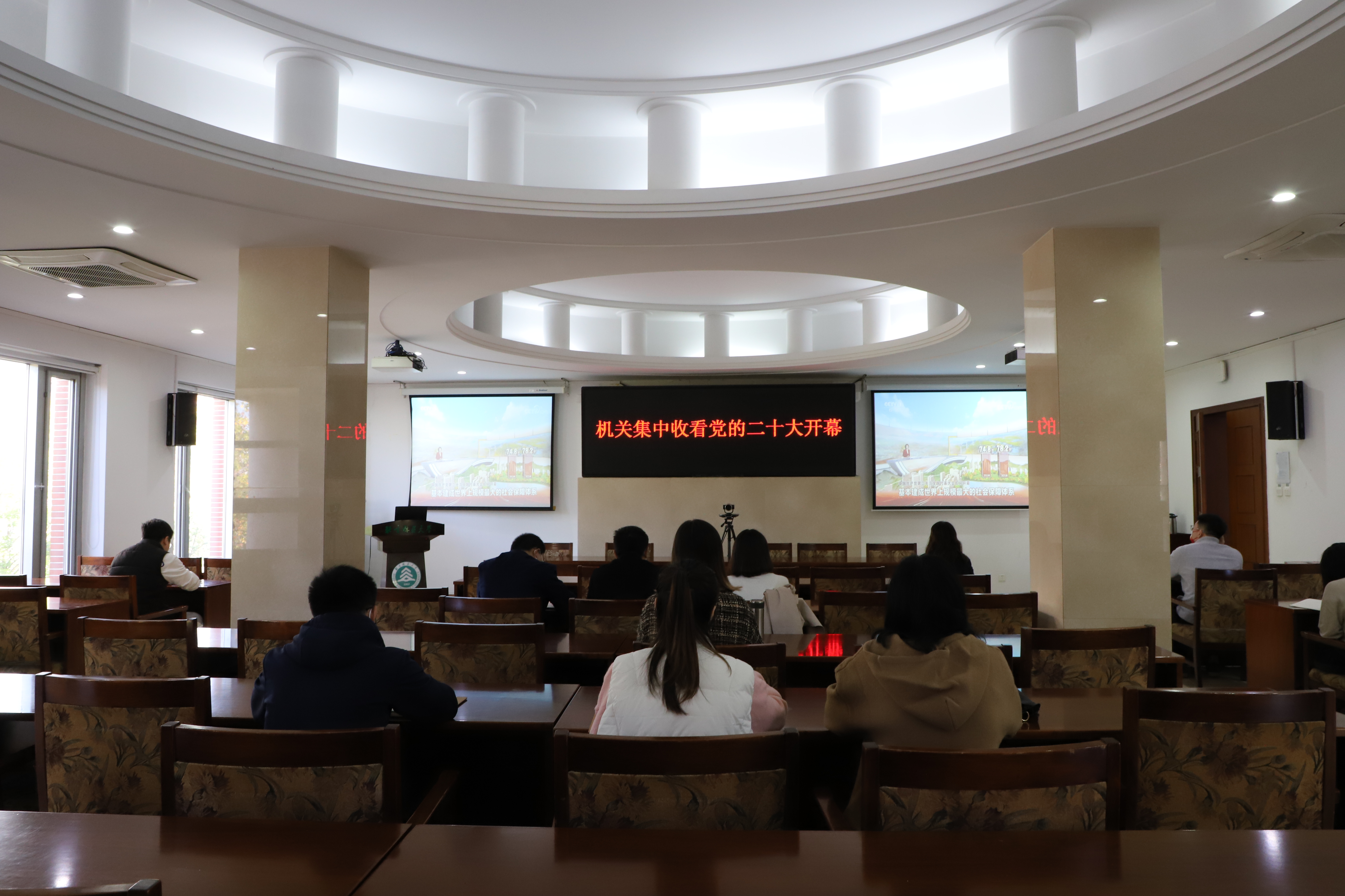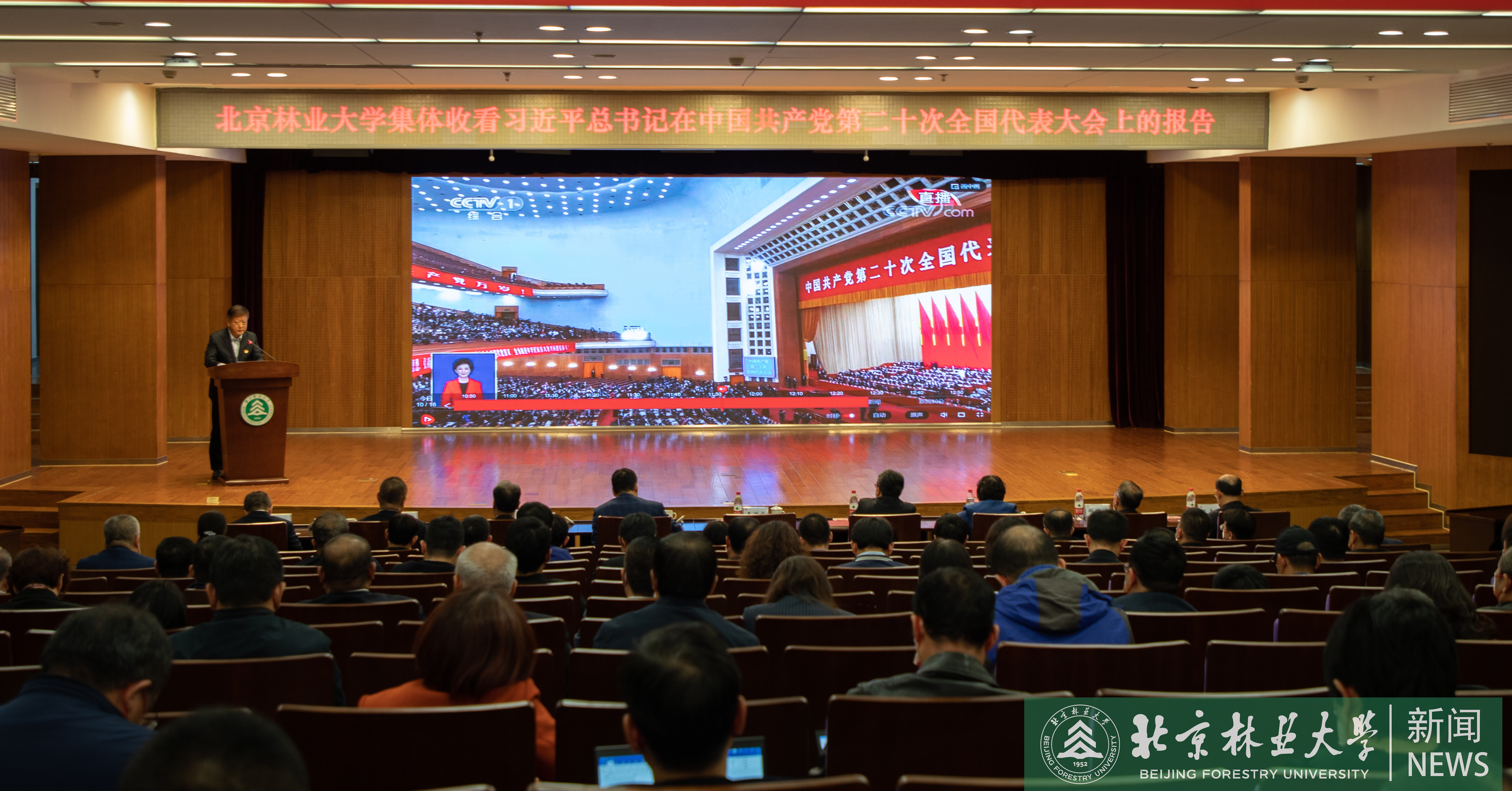中国共产党第二十次全国代表大会于10月16日上午10时在人民大会堂大礼堂开幕。北京林业大学全体校领导、各部门负责人、教师党支部书记代表、教师代表共160余人集体在学研大厦报告厅观看习近平总书记在中国共产党第二十次全国代表大会上的报告。