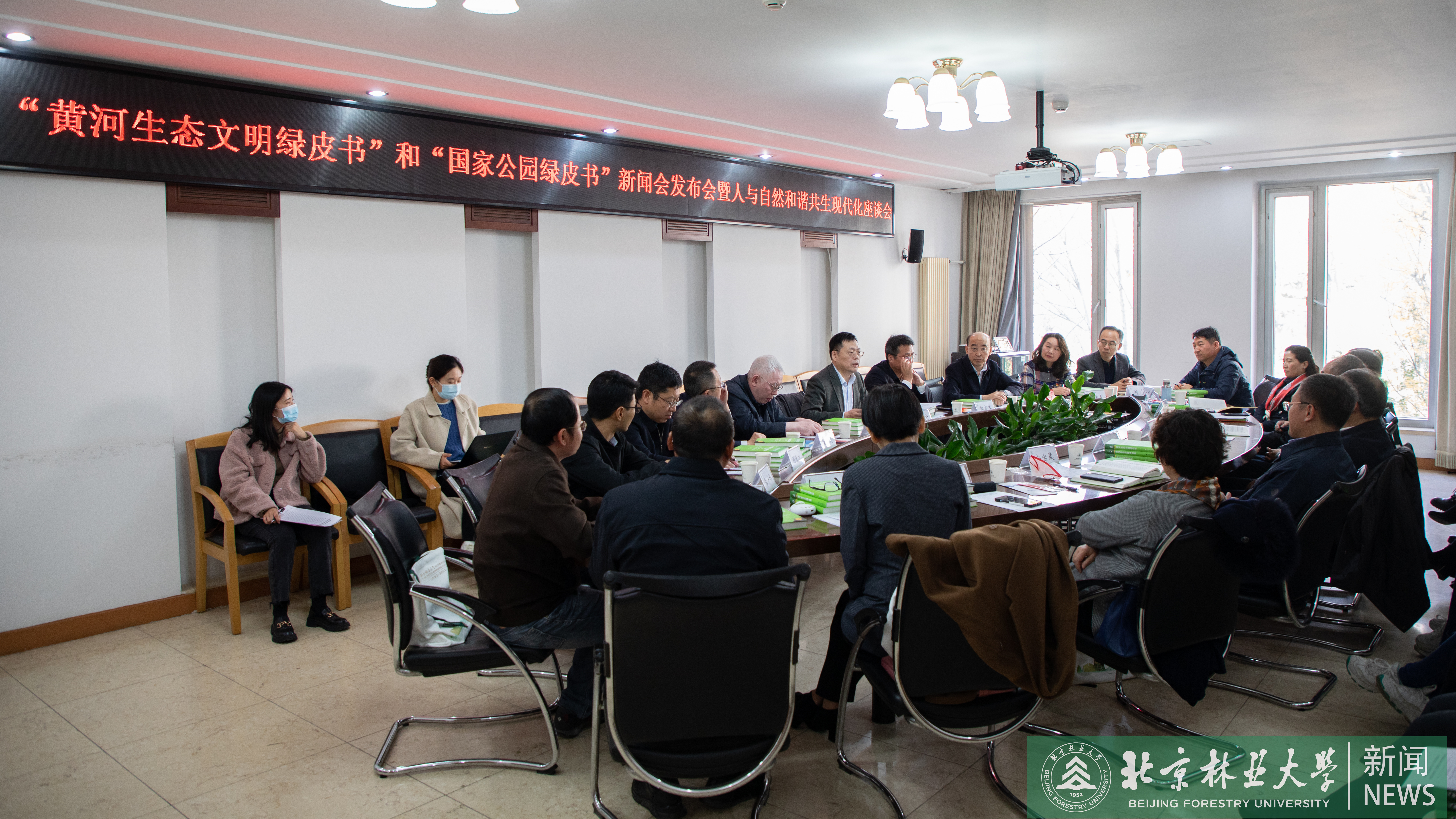 11月5日上午,在党的二十大胜利闭幕,北京林业大学70周年校庆之际,由北京林业大学编撰、社会科学文献出版社出版发行的我国第二部“黄河生态文明绿皮书”和首部“国家公园绿皮书”发布会暨人与自然和谐共生现代化座谈会在北京林业大学召开。我校校长安黎哲、副校长程武、副校长张志强出席会议,国家林业和草原局科技司、社科文献出版社、中国生态文明研究与促进会、中共中央党校(国家行政学院)、世界经济论坛、中国科学院青藏高原研究所、北京市园林绿化局、北京生态文化协会、人民日报社、光明日报社等单位领导和代表出席会议。北京林业大学科技处、社会服务和综合研究部负责人,马克思主义学院等相关学院、智库单位负责人以及部分作者代表参加会议。新闻发布会和专家座谈会由程武主持。