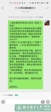 11月9日,学校接到北京市“本次考试改为在各京内高校设置考点”的紧急通知,当时距离考试开始仅剩80多个小时,学校第一时间成立了由分管学生工作的党委副书记为负责人,党政办、组织部、就业创业指导中心、校医院、教务处、保卫处、综合保障部和相关学院组成的工作专班,逐一摸底每名考生情况、了解考生动态的基础上,制定了详细的工作方案。