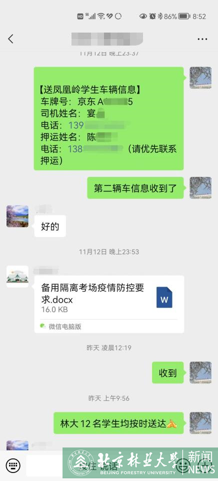 12名校外集中隔离区的考生分别在两处隔离,经请示海淀疾控中心,本着“一个也接送,一个不能少”的原则,党政办、组织部、就业创业指导中心与市委组织部、市考评办、海淀区外联办等部门多次沟通,协调海淀疾控中心派转运车辆准时将12名考生送至隔离考场入口;学工部考虑到隔离区考生就餐不便,主动联系校外隔离点工作人员,提前为考生准备早饭。